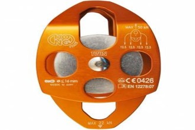 Kong Twin Double pulley with double wheel, mobile side plates and high efficiency (96%) ball bearing.