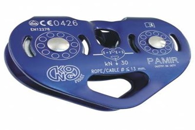 Kong Pamir Fast Double Pulley with aluminum body and double steel wheels. For use on ropes or steel cables of maximum diameter 13 mm.